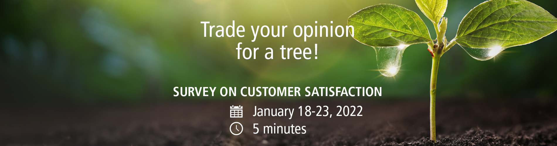 We will be planting a tree for each questionnaire filled out as part of this year’s customer satisfaction survey!